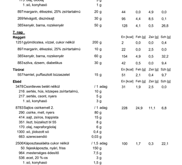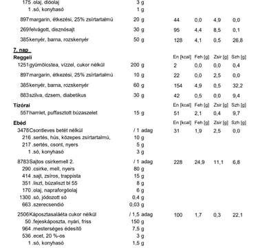 Ezek után beállítom a diétának és az anamnézisből nyert információknak megfelelő napi kalória, fehérje, zsír, szénhidrátmennyiséget. A tervezés során törekszem változatos ételek, élelmiszerek beillesztésére, hiszen nem csak pl. 5 napig kell tartani a diétát!